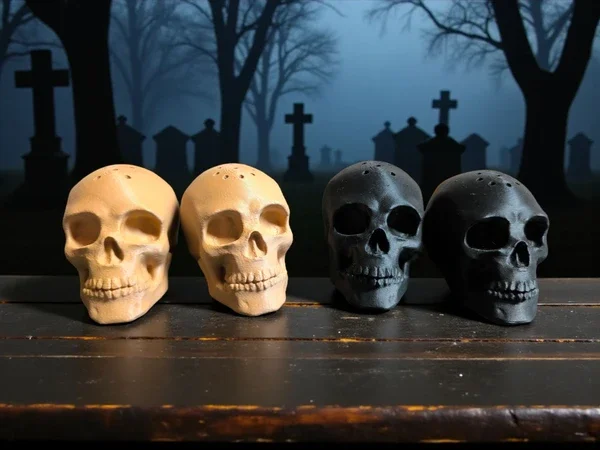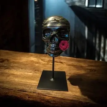 Cermamic skulls on metal holder